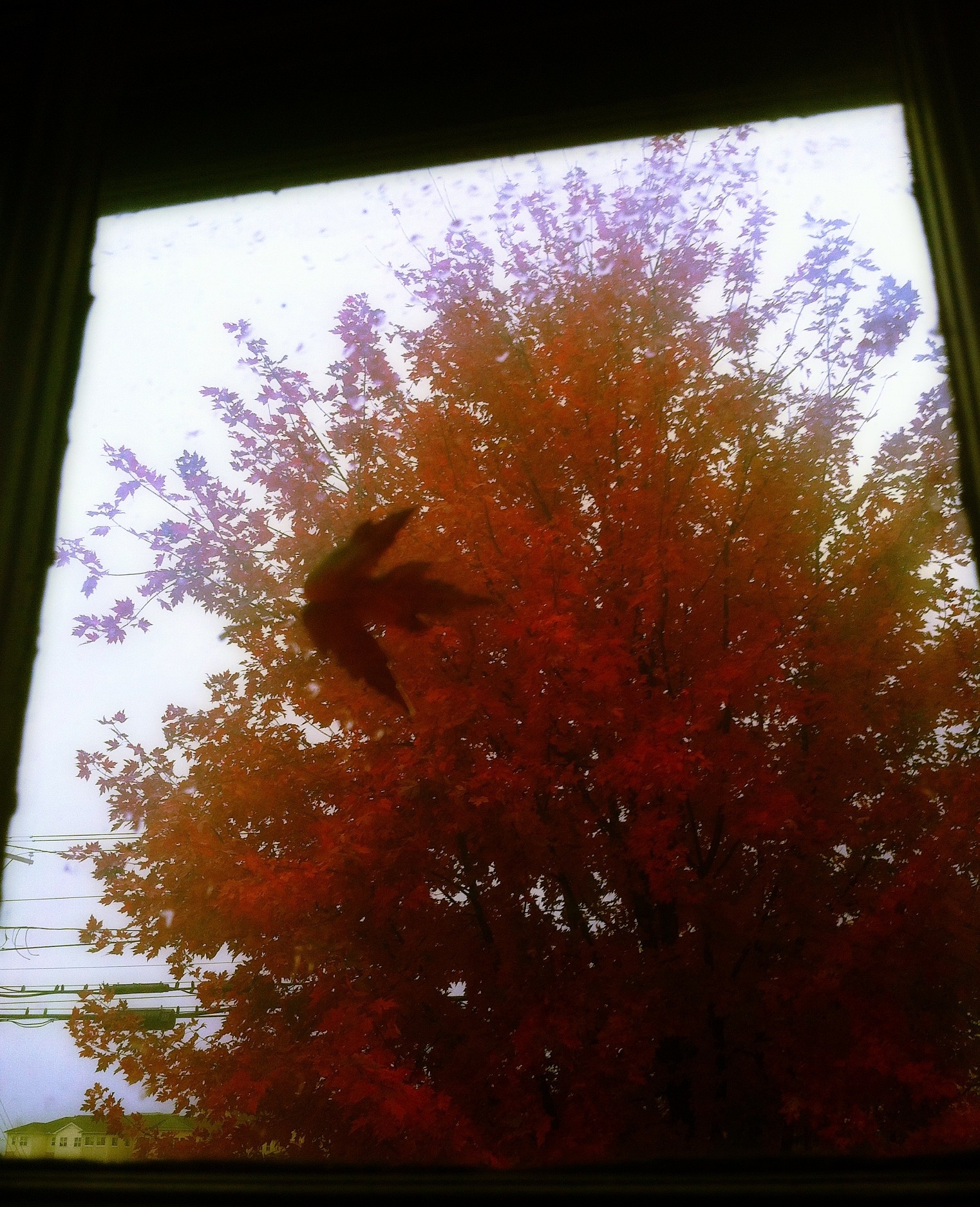This morning began with a sleep-in, listening to the wind and rain. I love a good thunderstorm! The leaves from the maple trees were plastered against the windows.