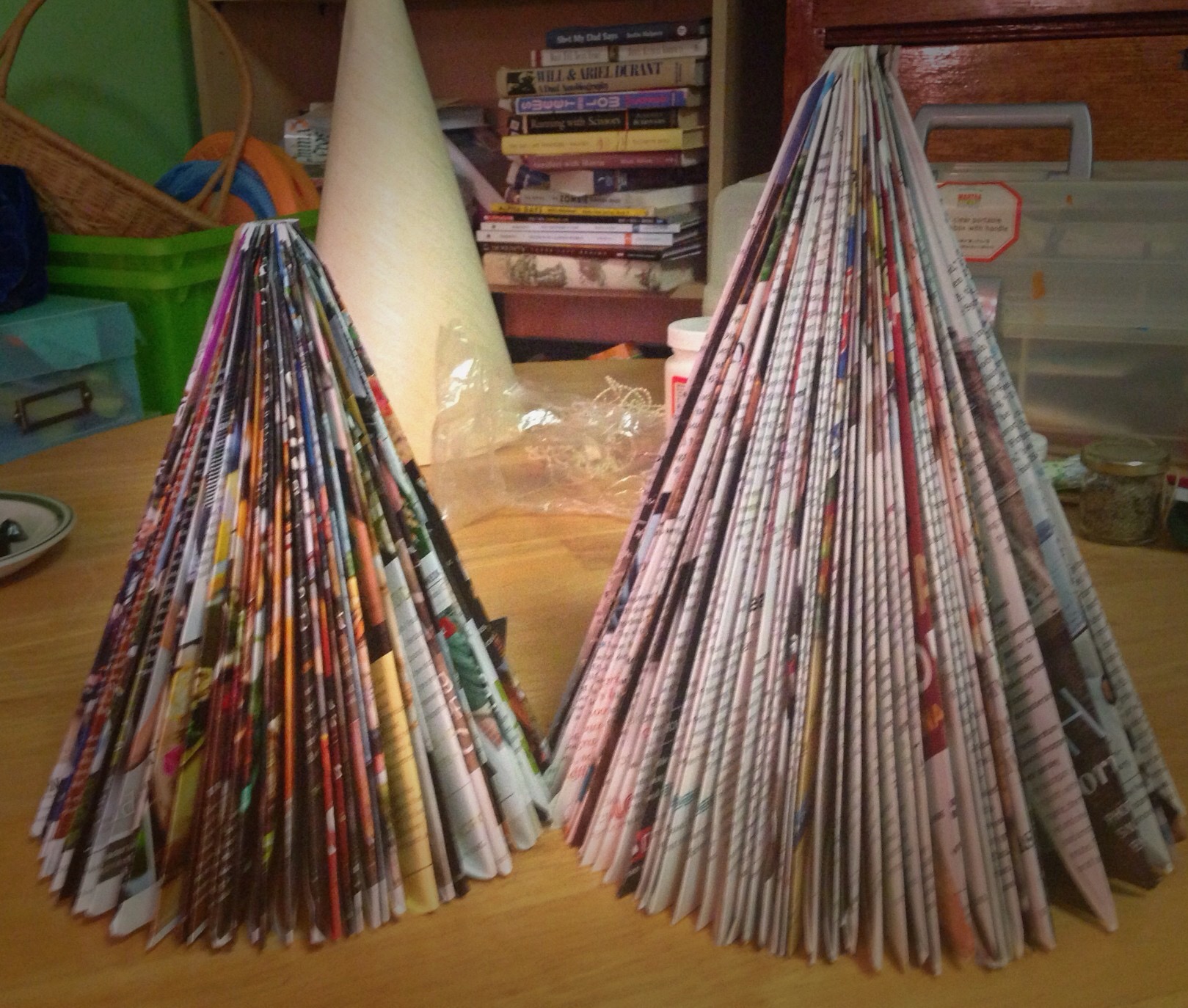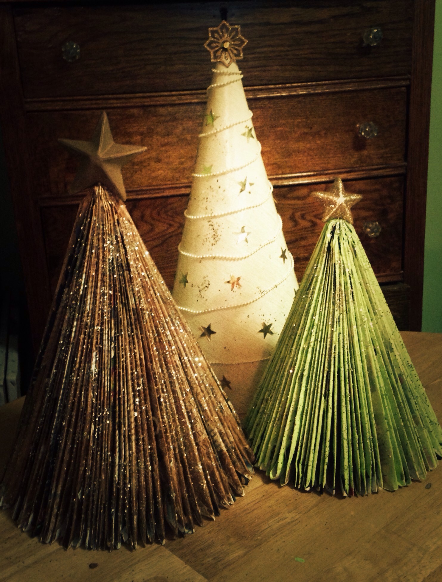 Trees two and three were created from magazines. This is what they looked like all folded and ready to decorate: