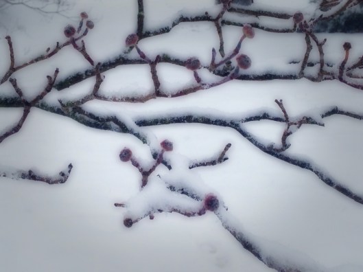 Though most of the east coast has been hammered with snow, here in Lancaster County we are for the first time this winter, on March 5, getting an actual snowstorm of more than an inch or two. And I am getting an actual snow day, which means that I can work from home and enjoy the peacefulness of snow falling. I love the patterns of branches against a white backdrop.