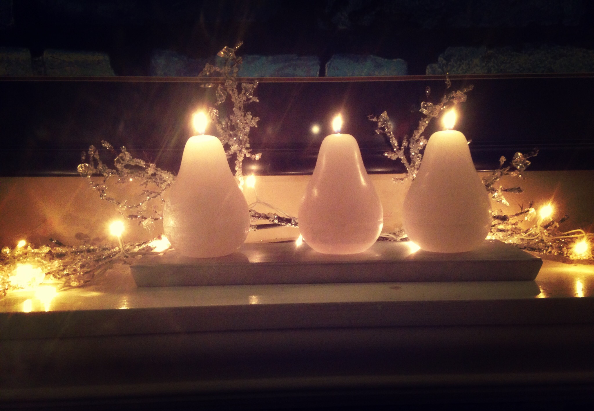 “The lamp is burning low upon my table top, the snow is gently falling…